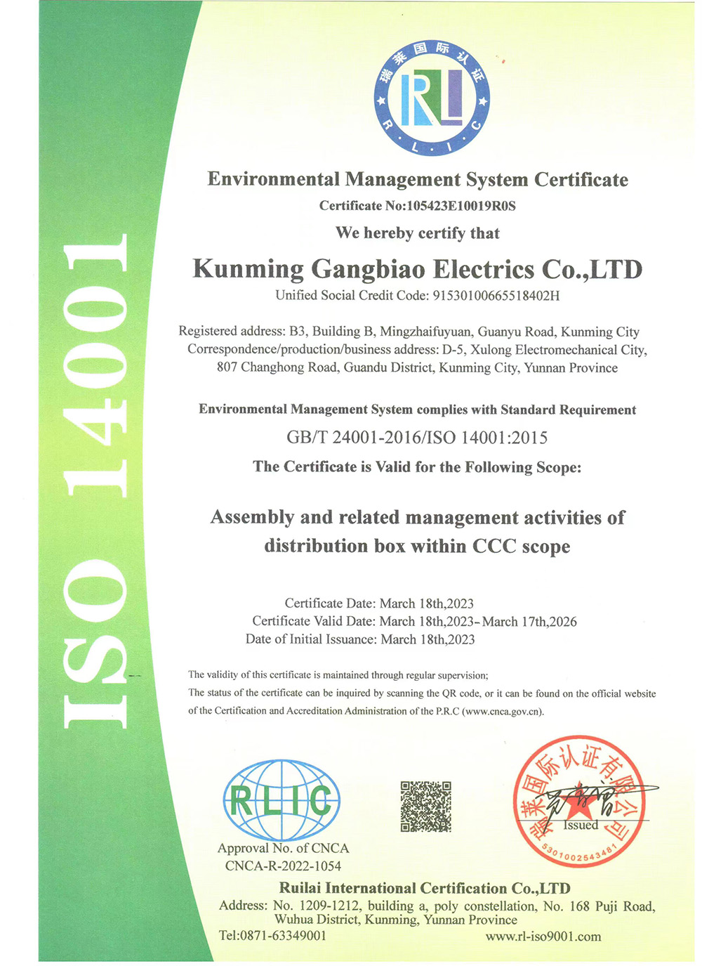 环境管理体系认证证书