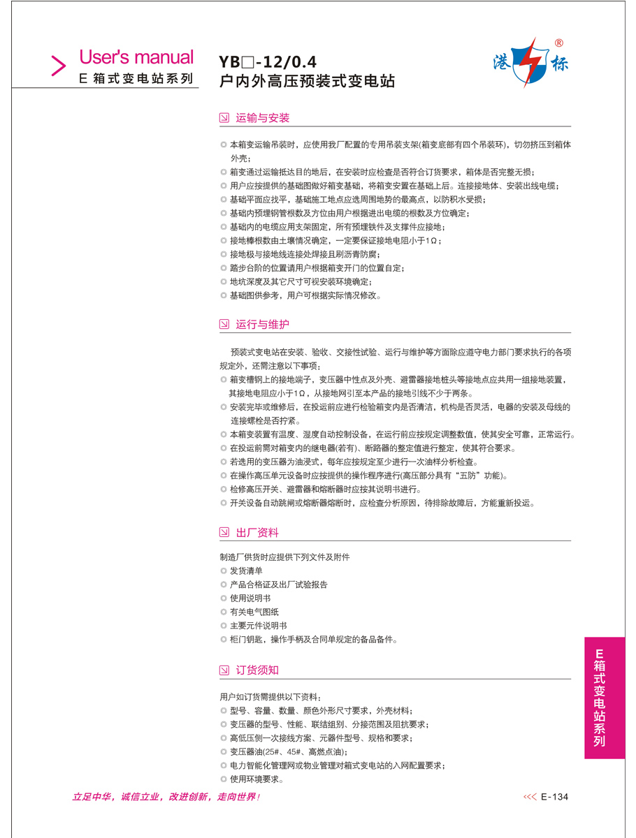 YB□-12/0.4 户内外高压预装式变电站