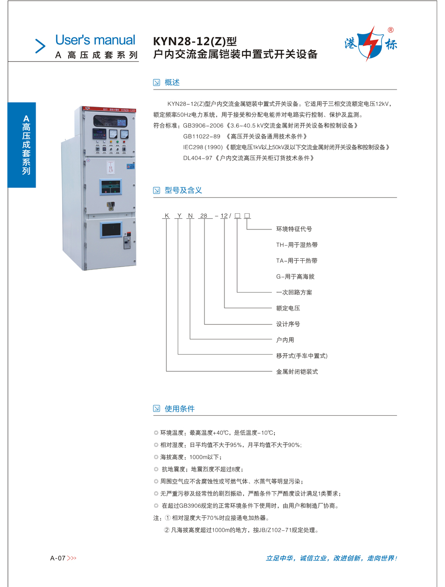 KYN28-12(Z)型户内交流金属铠装中置式开关设备